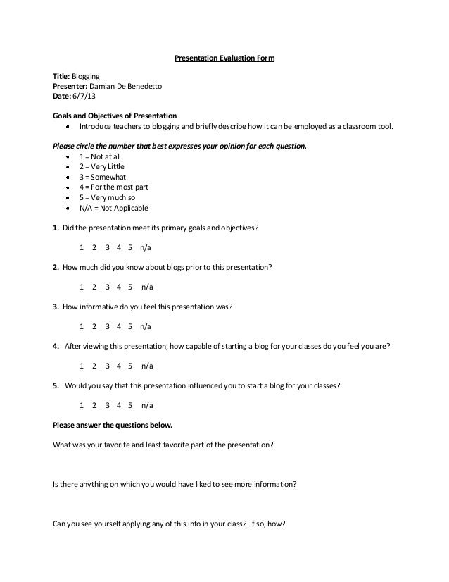 evaluation form for class presentation tags : Presentation evaluation form , Presentation Evaluation Feedback Form for Pinterest , æ½sirçWiki / Tam MK, Hau KK, Mo WF, Lo H (KLA: English) , Evaluation Template Free Download Documents in PDF, Word Sample , Pecha Kucha Presentations wesfryer , Technology Safety Poster Evaluation Donavan's 7th Grade Blog , To use this stock image in your creative project, please select the , Reviews :: Bill Crawford, Ph.D. Keynote Speaker, Psychologist , Download Editable Customer Survey Form For Only 499 Apps Directories , Evaluation form KGU å°éæ¼ç¿ Seminar on Bilingualism , Everyone is a star & deserves the right to twinkle Just another site , Five Gals & Therapy Pals Occupational Therapy Intervention Plan , social work progress note template , evaluation form for class presentation,